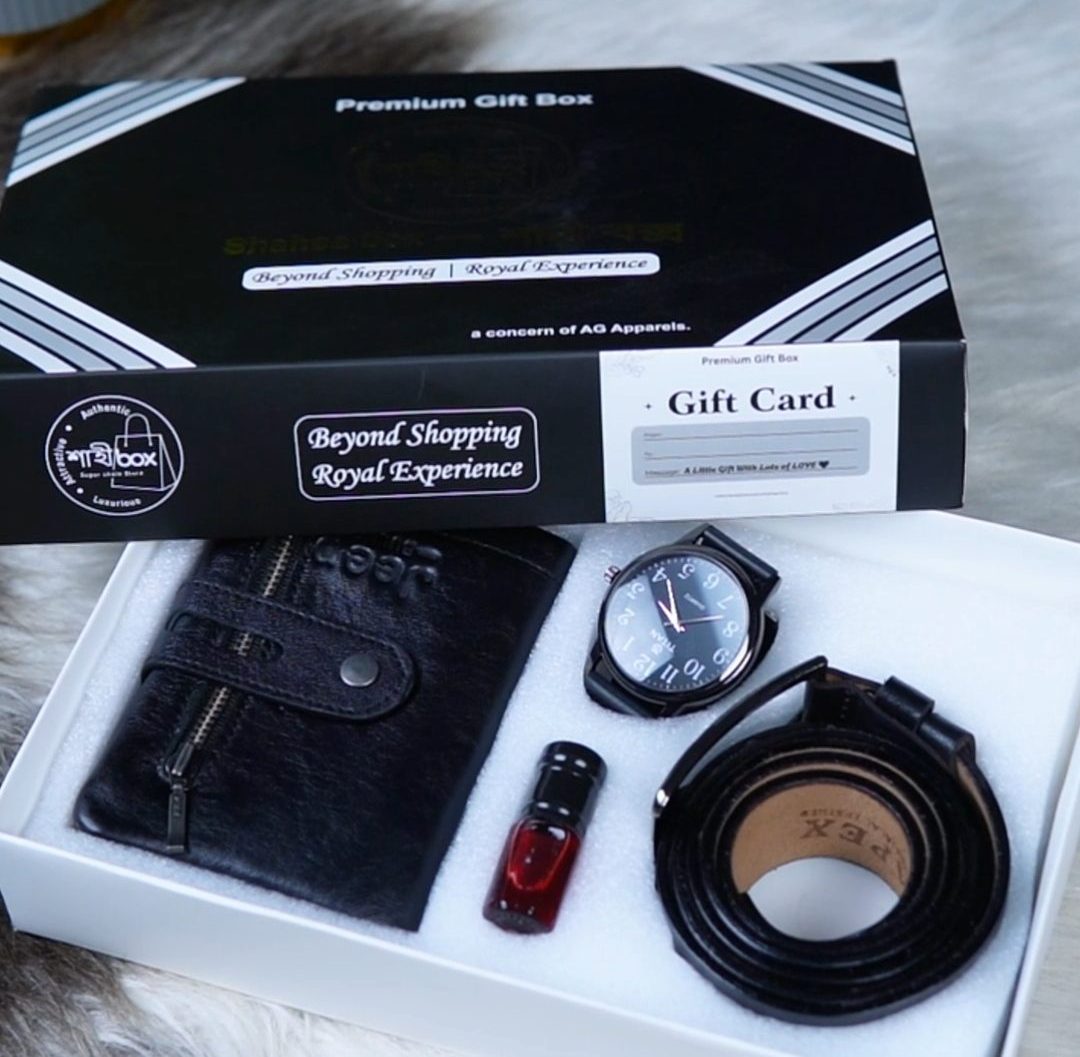 অরিজিনাল চামড়ার তৈরি ওয়ালেট, বেল্ট ঘড়ি, আর জনপ্রিয় Vampire Blood আতর – সব একসাথে এক প্রিমিয়াম প্যাকেজে।